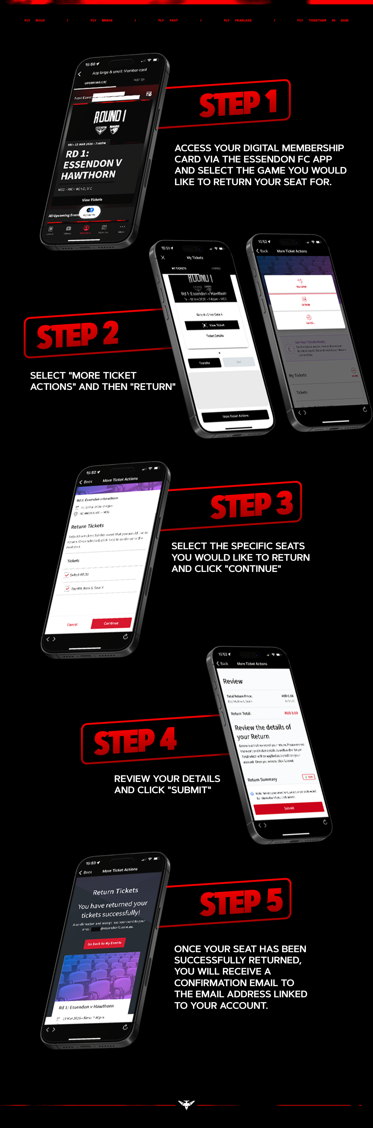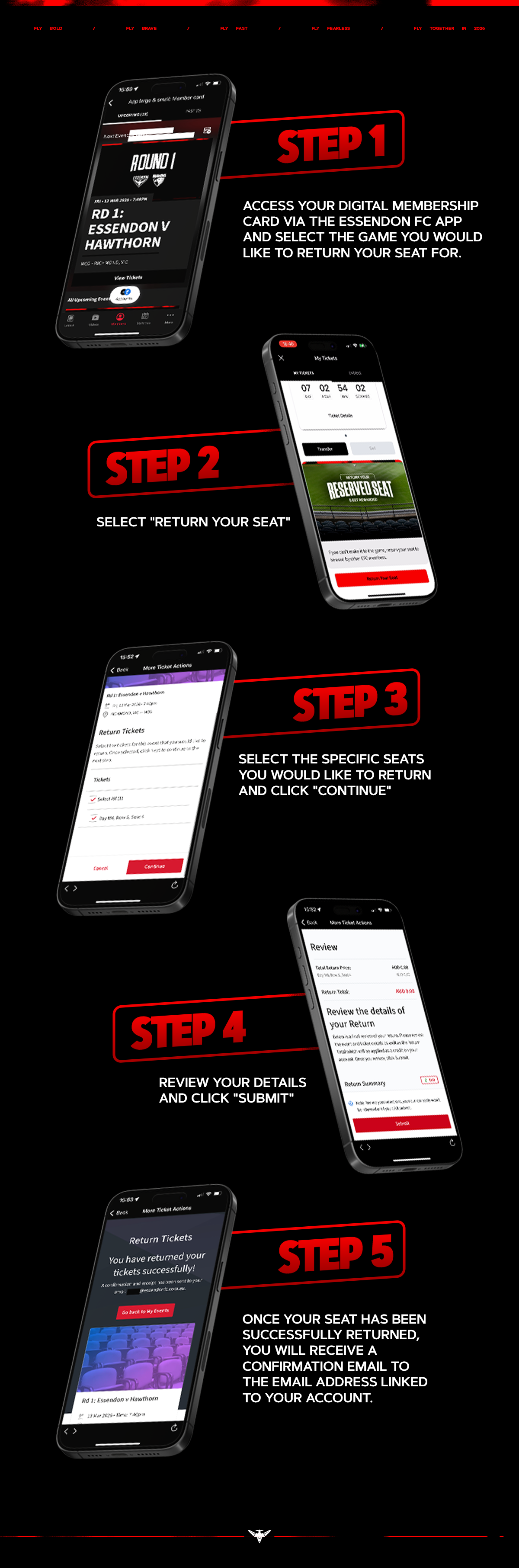 Members with reserved seats for HOME games can return their seat if unable to attend a game, and receive a partial credit off their 2027 reserved seat membership.